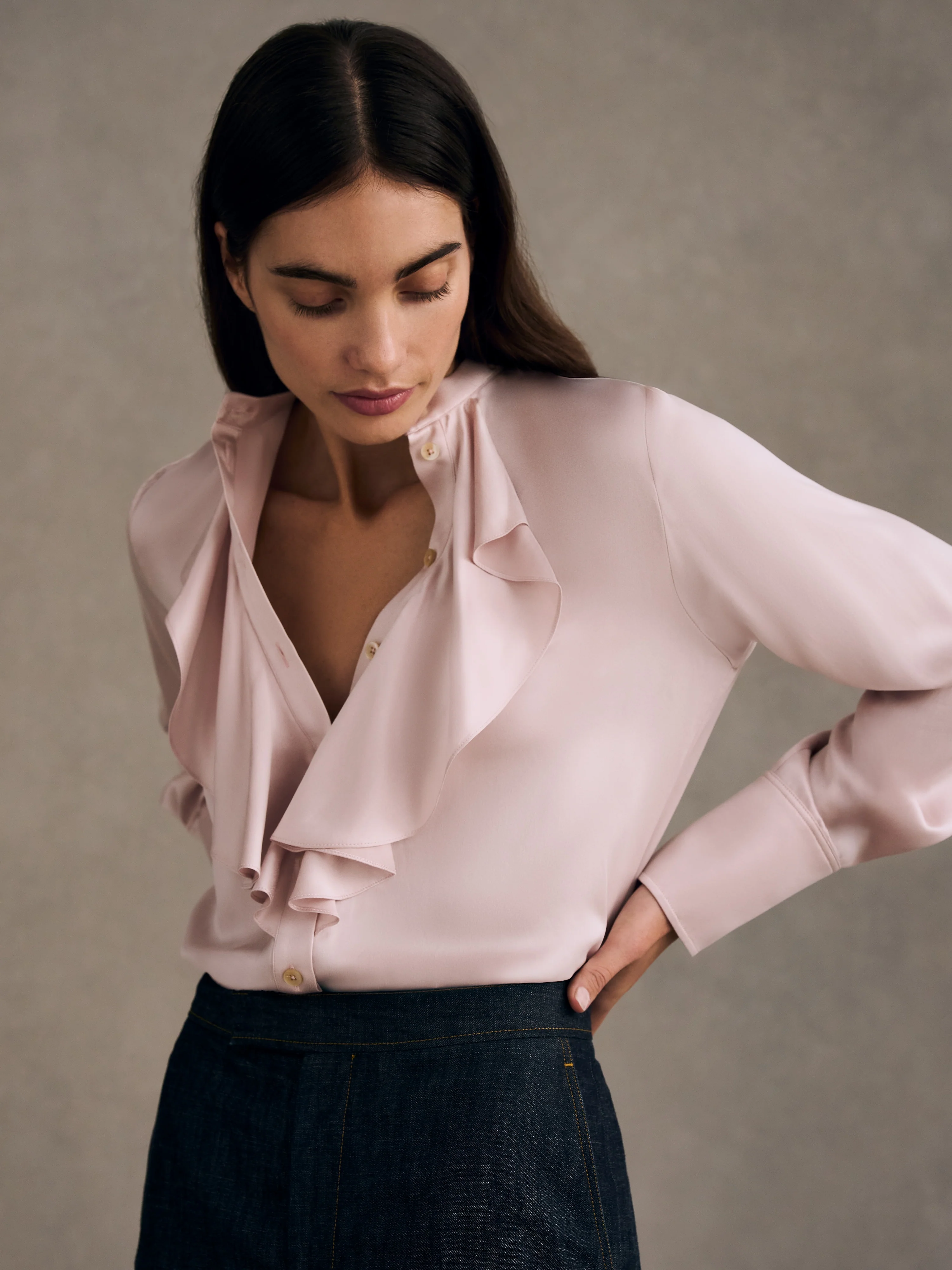 Cascade Ruffle Blouse in Sandwashed Silk Satin