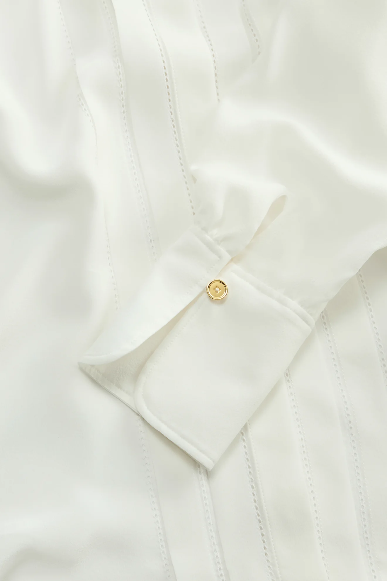- Pleated silk blouse with delicate ladder stitch detail at each pleat.