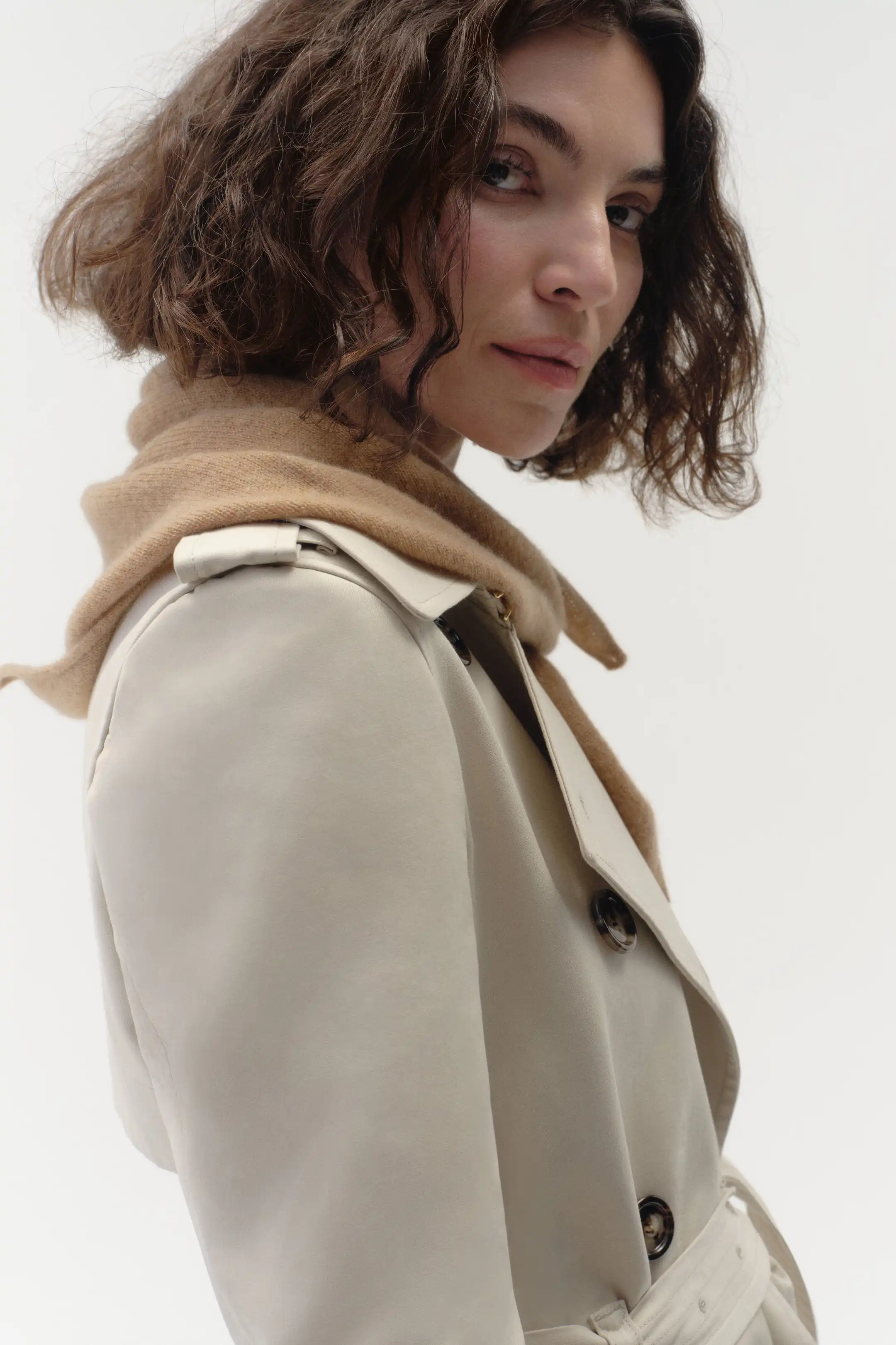 - Signature long-length trench with epaulets and statement details
