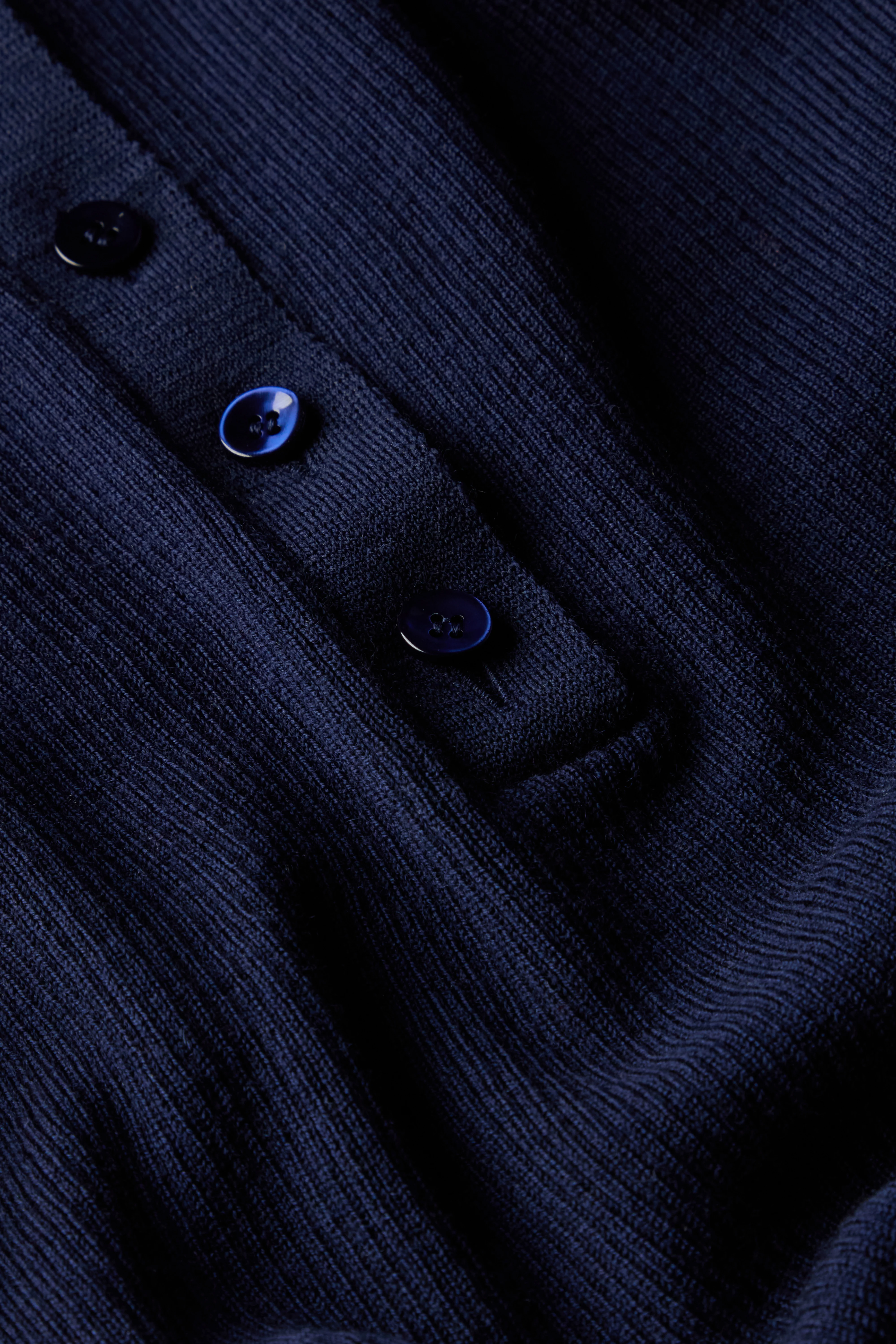 - Fine gauge rib polo knitted using 100% ultra fine Italian merino wool.