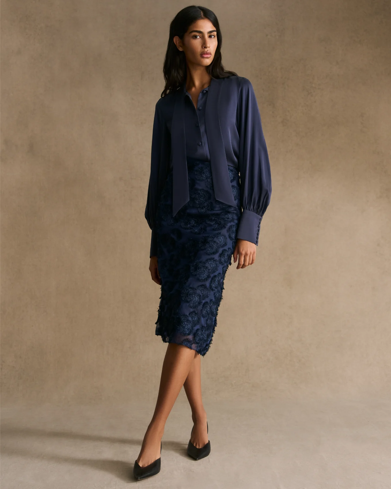 - A dramatic silk bow blouse with a sumptuous tie at the neck, can be tied 3 ways.