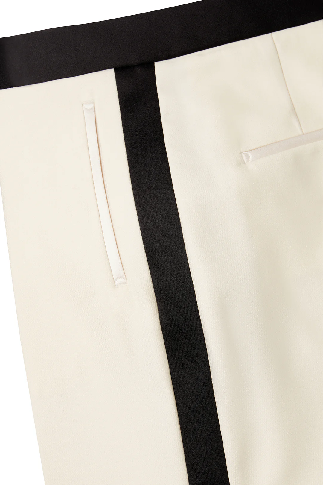 -70%Straight Leg Trouser with Silk Satin Tuxedo Stripe in Barathea—